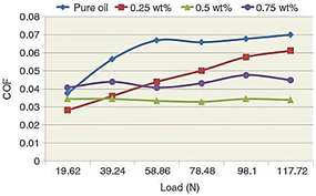 This study showed that mixing of nanoparticles in engine oil significantly reduced the friction and wear rate and hence improved the lubricating properties of engine oils, resulting in longer life of components.